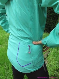 La chaqueta se ajusta bastante bien al cuerpo y gracias a su patronaje Motionfit nos permite movernos con total libertad a la hora de correr, la parte trasera es mas larga que la delantera para que no se suba, con lo que tapa muy bien los riñones y no tenemos problema de enfriarnos por aquí.