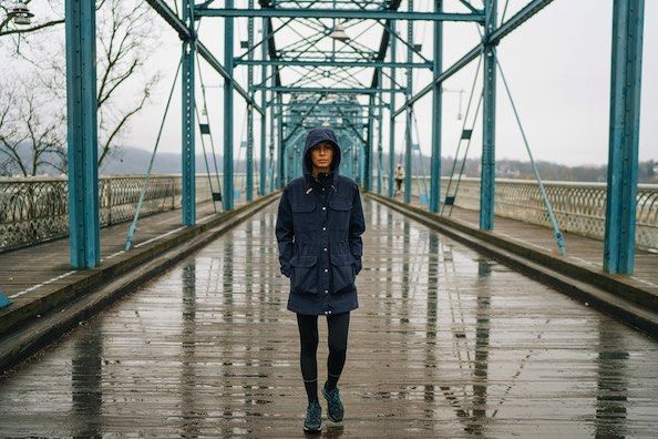 La nueva Dryzzle FUTURELIGHTTM está disponible en los colores Burnt Olive Green y Misty Jade y cuenta con una capucha, puños ajustables con Velcro® y una solapa de cierre a presión para mantener el calor corporal y proteger del viento y la lluvia.