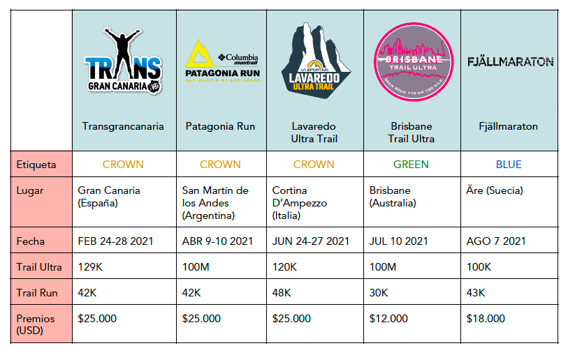 El World Championship tiene 10 paradas a lo largo y ancho del mundo, en cuatro continentes, que otorgarán puntos para el ranking final y estará dividido en dos categorías: “Trail Run Championship” (carreras hasta 49k) y “Trail Ultra Championship” (Carreras de 50k o más).