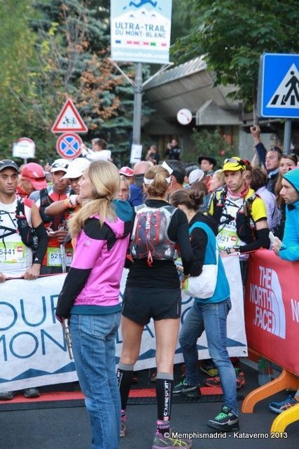 Casi todo el descenso, lo hice junto a  otros 2 o 3 corredores y hacer la bajada en un pequeño grupo fue energizante! Sólo el sonido de nuestros pasos en medio de la noche. Las luces de Chamonix se veían cada vez más acerca y poco a poco fui adelantando a algún corredor más hasta llegar a Chamonix. De ahí sólo serían unas cuadras hasta la meta. A pesar de no haber mucha gente en el pueblo, la felicidad de ya estar ahí era inmensa.  Es difícil transmitir la emoción que se siente en ese momento… no importa cuán cansada estas,  todos los nuevos pequeños dolores que sientes o saber cuánto dolerá todo tu cuerpo al día siguiente… saber que estas por terminar un desafío y  cruzar la meta que tantas veces has visualizado, es un momento muy especial.  En esta oportunidad,  no iba a poder compartir ese momento con John (que aún estaba en carrera), pero en la recta final había varios amigos esperándome. Con una enorme sonrisa, finalmente cruce la tan deseada meta.