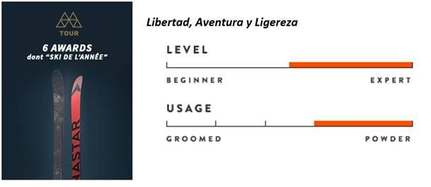 Versátil por naturaleza, el M-Tour sabe cómo ser ligero en la subida, y enérgico, estable y ligero cuando se trata de deslizarse cuesta abajo. Con un perfil y rockers direccionales, perfectos para adaptarse a cualquier tipo de nieve, cuenta con una construcción ligera Hybrid Core. Se trata de la mejor solución para obtener una sensación única en la nieve: mezclar el rendimiento de la madera paulownia con la ligereza y la sensación del PU. Además, incorpora fibra de Basalto para aportar la amortiguación y ligereza necesaria para la práctica del esquí de montaña. Hasta 6 premios ha recibido este esquí de la gama M-Tour por expertos del sector. Las revistas Backcountry Magazine o Ski Rando Magazine también lo han elegido el mejor esquí de montaña de 2021.