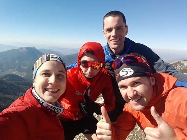 Realmente en ese momento no puedo decir mucho, prácticamente nada. Pero al poco, y después de abrigarme, ya tengo ganas de hablar con unos y otros, grabar vídeos, hacer fotos y animar a los que llegan! El siguiente en llegar de la expedición alcoyana es Erik, y después Carlos; que con el dorsal número 1 llegó arriba antes que muchos aún saliendo el último.