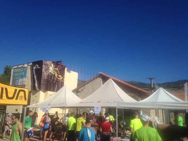 A las 9:15 hrs ya estábamos en Lozoya,  no tuvimos problemas de aparcamiento, justo a la entrada del pueblo, habían habilitado un descampado bastante grande para aparcar muy cerca de la recogida de dorsales. Así que nos pusimos las zapas, nos echamos cremita, porque el día prometía y directos a por nuestra bolsa del corredor.