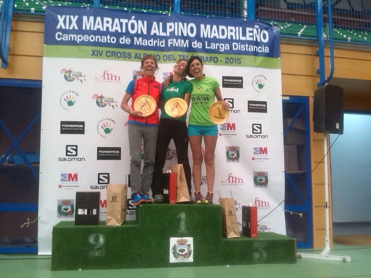 Hoy Domingo 14 de Junio se ha celebrado una nueva edición del Maratón Alpino Madrileño, 42km por la sierra del Guadarrama, donde la meteorología nos ha dado una tregua pese a que las temperaturas han bajado bastante y en algunos momentos ha llegado a granizar. El podio femenino fue Azahara García, Maria Luisa Garcia y Maria Cruz Aragón.