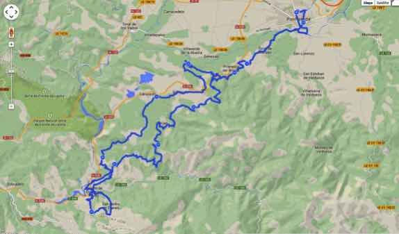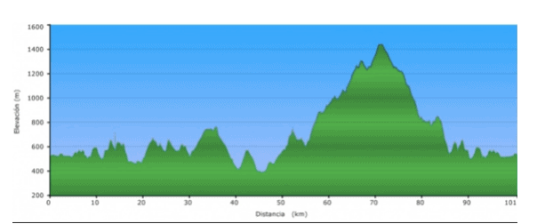 Ahora comienza lo más duro, ya que a pesar de haberla hecho en 2014, han cambiado esta parte del recorrido y sólo sé que me esperan 20 km. de subida hasta la cumbre más alta de la ruta (1320 m.), que se hace físicamente peor por la hora del día que es, y el intenso calor que comienza a hacerse notar.