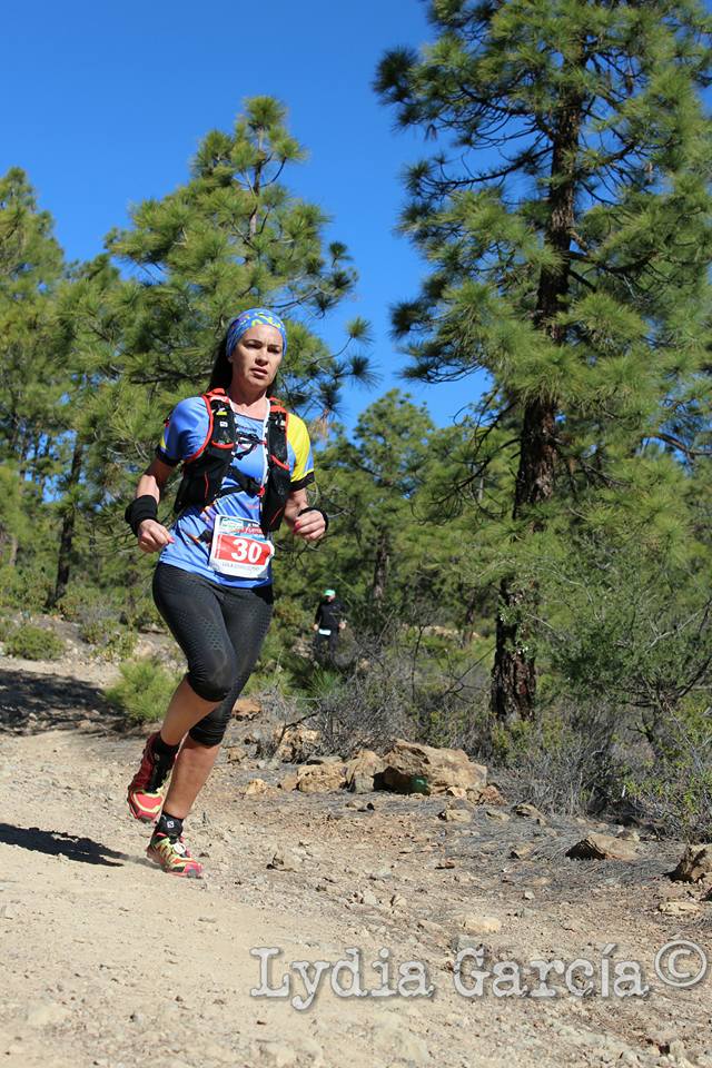 Comienza otra subida, me veía muy bien, nada cansada, mi cuerpo al que yo no paraba de repetirle que me acompañara toda la carrera, lo estaba haciendo. Cuando comencé la bajada hasta Ayagaures me encontraba mejor, había asimilado bien los kilómetros, allí en el km. 24,6, que pasas otro control no paraba de acordarme de mi hija Tatyana que estaría siguiéndome y viendo mi track de carrera haber si llegaba a los puntos, de su cara de alegría cuando viera mi nombre al cruzarlos, allí si paré avituallarme y empecé mi carrera, había que llegar, comencé una subida y me di cuenta que estaba adelantando gente, pero cual es mi sorpresa que empieza la bajada y no paro de adelantar más gente, me encuentro bien, mis piernas responden y mi cuerpo no me dice para, sino adelante que esto lo terminamos.