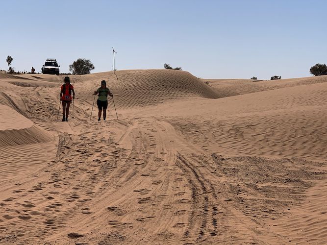 Por el camino en el 4×4 nos cruzamos con Bego y con Marta, que siguen muy fuertes hacia su meta