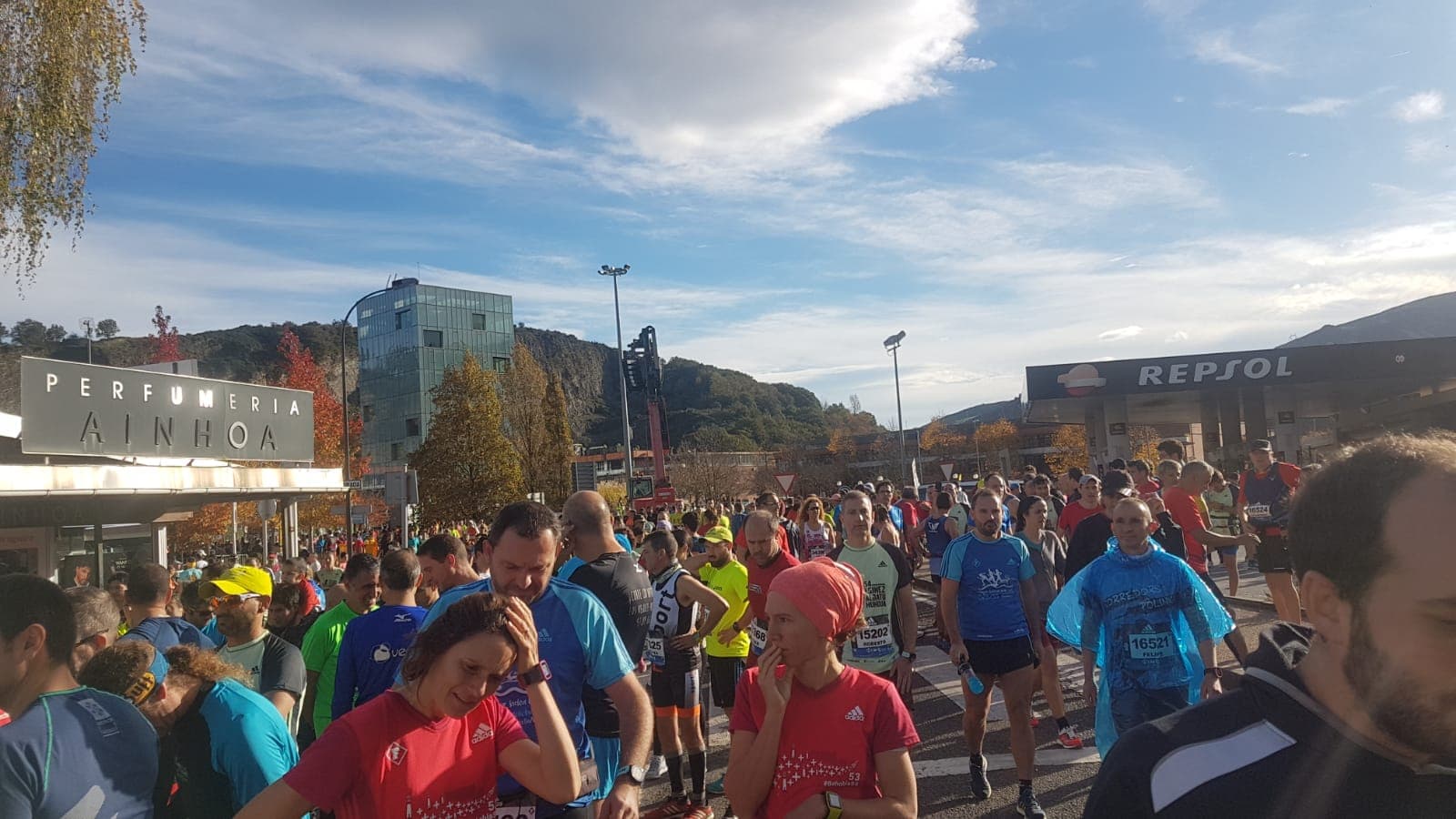 Parpadeo y kilómetro 1, no se me ha quitado aún la piel de gallina y kilómetro 3, no puedo dejar de sonreír y estamos bajando la temida subida de Gaintxurizketa. Va a ser verdad eso de que la mayoría de los kilómetros los corre la afición por ti. Increíble lo arropada que te hace sentir la gente animándote por tu nombre, además creo que a las chicas nos animan todavía más si cabe.