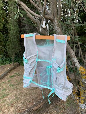 Así pues, los puntos a destacar serían que tenemos ante nosotras un chaleco mochila que se adapta muy bien a nuestro cuerpo, transpirable, que es muy ligera, y que tiene una capacidad muy grande con sus 8 bolsillos en los que puedes guardar todos los accesorios, móvil, barritas, geles… e incluso llevar los bastones en los anclajes de la parte frontal sin que molesten.