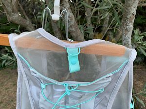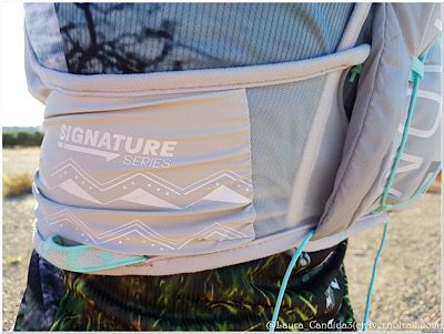 Además otro punto positivo es que tiene 6 bolsillos frontales y 2 traseros, y exceptuando el bolsillo grande trasero, al resto se puede llegar sin necesidad de quitarte la mochila, incluido al bolsillo trasero de cremallera. Eso está genial, ya que puedes tener acceso rápido a cosas que, en carrera sobre todo, necesitas tener a mano.