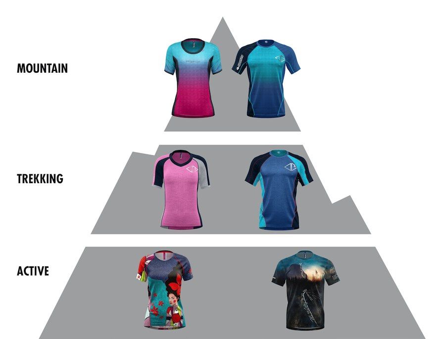 Según la actividad que se quiera realizar, la empresa italiana ha decidido clasificar sus prendas en función de sus usos previstos: Mountain, Trekking y Active.