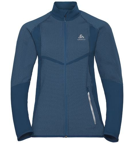 En contraste con las tradicionales chaquetas de membrana, la Chaqueta Velocity Pro es extremadamente ligera y muy elástica para ofrecer la máxima libertad de movimientos. En la parte frontal, tanto los pantalones como la chaqueta están hechos de paneles cortavientos que protegen del frío exterior. Para ofrecer una efectiva y espectacular resistencia al agua, Odlo utiliza un tratamiento hidrófugo DWR único en la cara externa del tejido, respetuoso con el medioambiente y sin PFC. Por último, la manga tiene una práctica abertura para el reloj, así los atletas pueden controlar el tiempo y los datos del ejercicio.