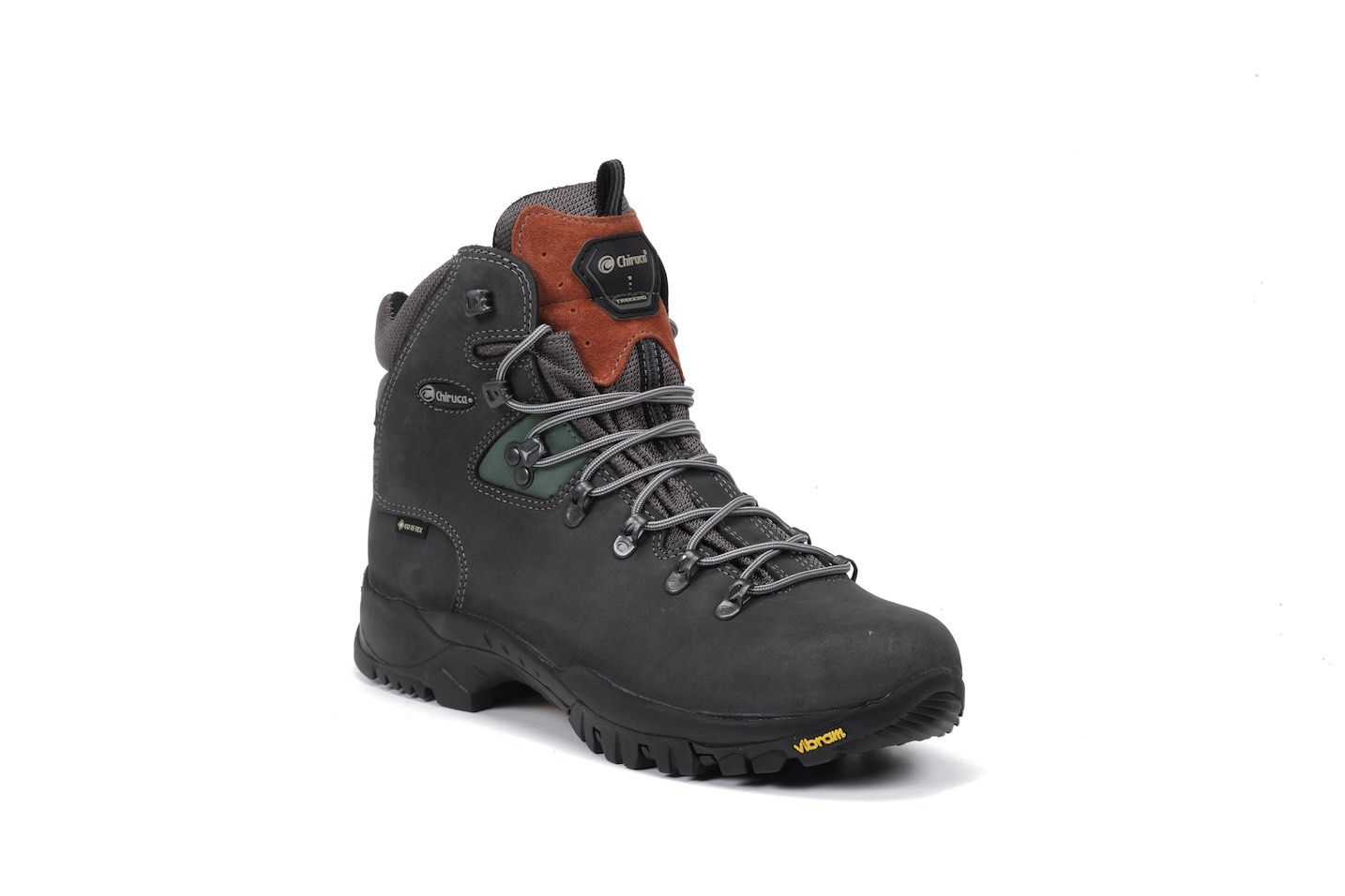 El corte de todas las botas está compuesto por pieles de primera calidad, serraje y nobuck, napas, corduras, y como no, todas ellas incorporan el forro interior impermeable y transpirable Gore-Tex®, que proporciona el óptimo confort climático cuando la práctica de actividades al aire libre puede verse acompañada de lluvia y frío, por lo que la incorporación de la membrana Gore-Tex® hará de las botas Chiruca® el calzado idóneo para ese senderismo o trekking, proporcionando al pie la impermeabilidad y transpirabilidad necesarias.