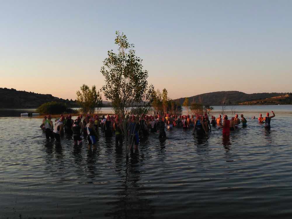 Son las 7:40 y ya estamos todos preparados para que nos den la salida; nos tiramos al agua para colocarnos en línea desde una de las boyas y a las 7:45 suena el pistoletazo de salida.