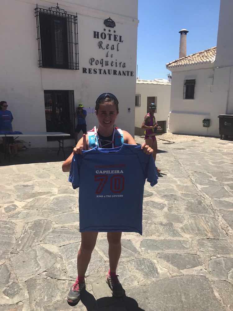 Las cifras finales son 70 kms totales en 5 h 43 minutos y como obsequio por haber completado todo esto una medalla hecha a mano y una camiseta de finisher, dos bonitos recuerdos de una prueba que deja marca.