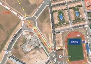 - P.K. 21,100.- Meta, pista de atletismo. Avituallamiento sólido y líquido.