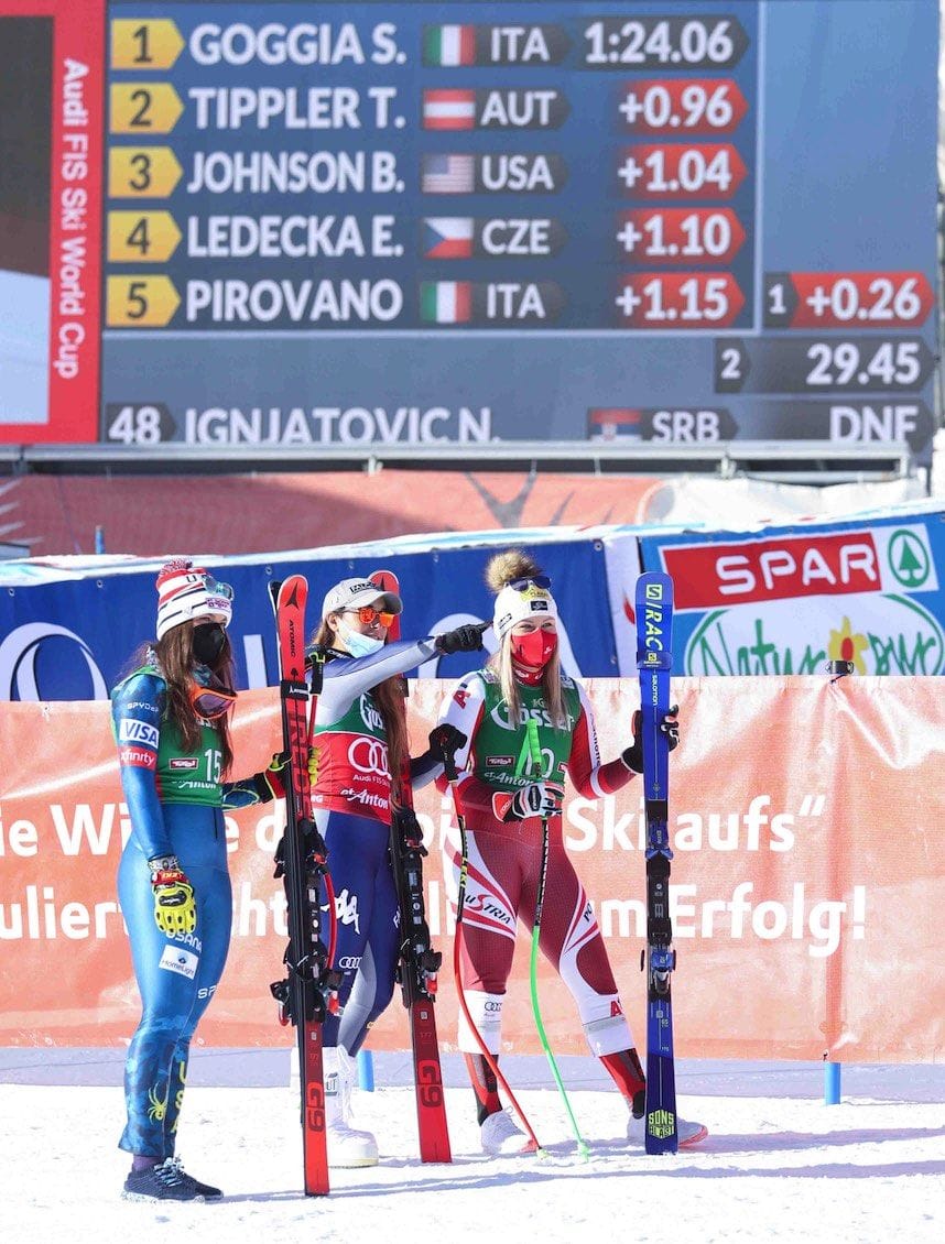 Destacar a su vez el tercer lugar de la joven (24 años) esquiadora norteamericana de Atomic Breezy Johnson, que suma así su tercer lugar en la presente Copa del Mundo, todos ellos en la disciplina del descenso.