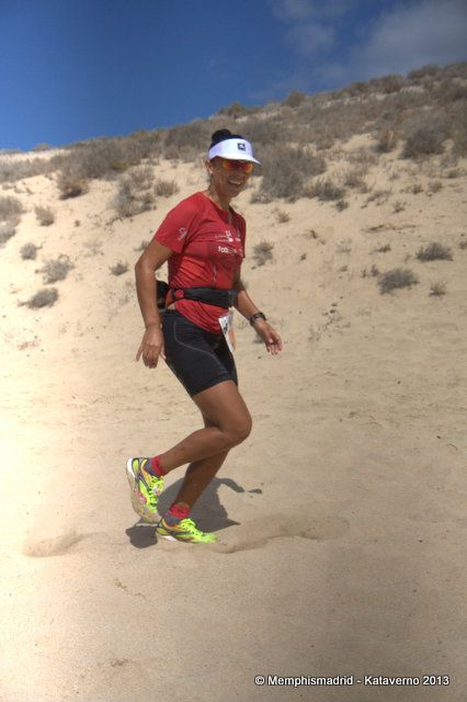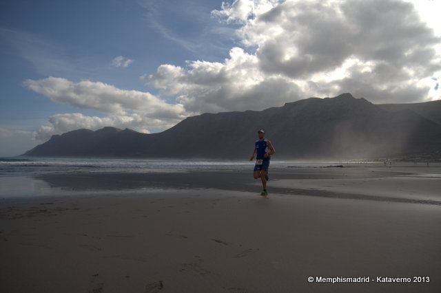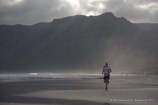 Al llegar a La Graciosa y cruzar la alfombrilla vuelve a ponerse en marcha el cronometro, correr por la isla es correr siempre por arena ya que no hay nada asfaltado y debe ser una sensación cuanto menos diferente y además hay que añadir el calor que empieza a ser muy pesado. (El comentario de Ana al llegar a meta fue “Tu no puedes correr aquí, te mueres”). Jajajajaja