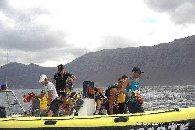 Una vez cruzada la meta volante, los corredores descansan mientras se organizan las fuera bordas para los traslados, los primeros en subir somos los fotógrafos ya que queremos estar en La Graciosa para cuando lleguen los primeros, el momento barco fue bastante divertido creo que para casi todos.