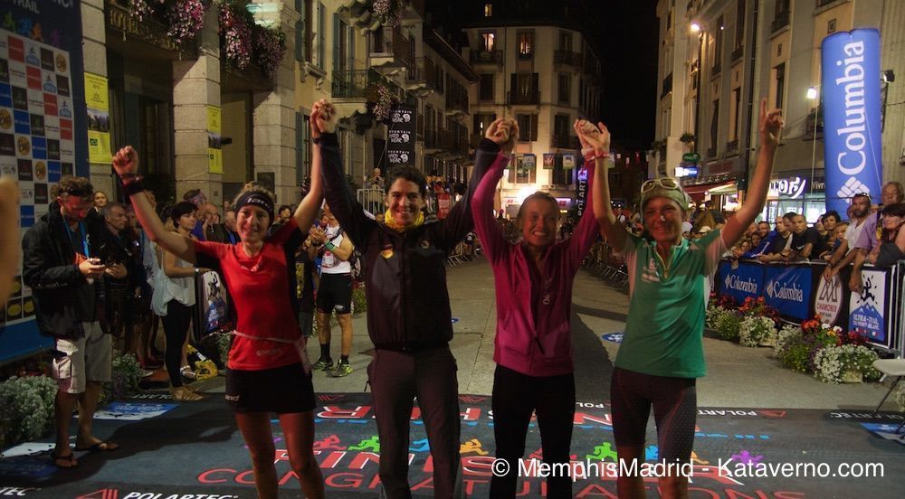 La meta en Chamonix aplaudió hasta la saciedad a la francesa Nathalie Mauclair de 45 años con un tiempo de 25h15:33, siendo la segunda francesa en ganar el UTMB® tras Karine Herry en 2006, Nathalie comentó en meta «Es simplemente fabuloso, ¡Es el segundo día del año para mi, el de los mundiales en Annecy y ayer! Visto el panorama de la carrera, no pensaba poder ganar. Durante toda la carrera el ambiente ha sido fabuloso. Tenía la impresión de estar en el Tour de France. Ha sido mágico, tenía la impresión de ser transportada por los ánimos del público y los voluntarios ».