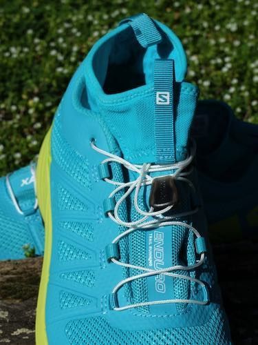 Y llegamos a la parte que sín duda más llama la atención al ver por primera vez las XA Enduro W: la polaina, se encuentra integrada al interior de la zapatilla y a su vez forma parte de la lengueta; en EVA con un sistema de simula una red, es elástica y adaptable, pero no deja de ser una protección extra, sobre todo a la hora de evitar que entre tierra o pequeñas piedras al interior de la zapatilla. Termina con una zona más cerrada que se adapta al tobillo, para asegurar esa protección que os decía.