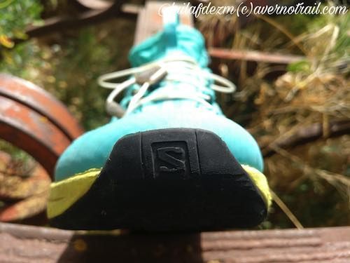 Protección, eso es lo que más se aprecia en toda la parte de la zapatilla que envuelve al pié. Muy protegido, pero sin perder nada de flexibilidad, en la puntera es donde se aprecia el refuerzo más cerrado y en los laterales, como es habitual en Salomon las bandas selladas de Sensifit logran mayor protección y sujección, al igual que la puntera el talón muy reforzado parece rígido a la vista, pero resulta agradable y se adapta al movimiento sin problema.