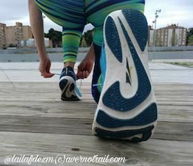 Al calzarlas me siento muy cómoda, quizá demasiado, me explico, son súper agradables, ligeras, suaves y cómodas en el apoyo de la planta, pero también me sentia los dedos y el empeine muy libres, muy suaves. Me dió la sensación de ser más para paseo que para correr; tengo el pié largo, pero muy estrecho así que dudé si notaria el pié seguro al salir a correr. Habría que ver si estaba confundiendo una cosa con otra, así que nos fuimos al asfalto de nuestra ciudad ese mismo primer día. Realizamos una salida corta con todo el equipo de Altra a un ritmo medio mientras seguíamos hablando del diseño. Las primeras sensaciones fueron buenas, la comodidad se reflejó en la carrera y no noté el pie tan inseguro como pensaba en un principio. Tampoco noté molestias en los gemelos, punto que se suele achacar al DroppZero en las primeras salidas.